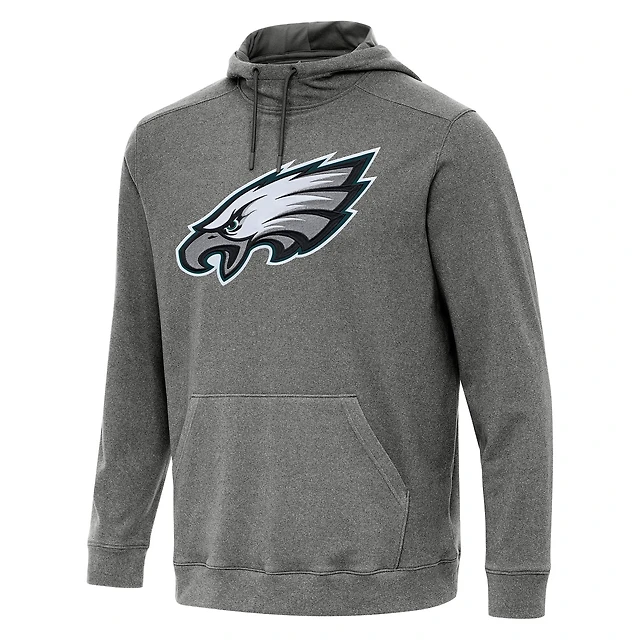 Men's Antigua Heather Black Philadelphia Eagles Cloud Pullover Hoodie