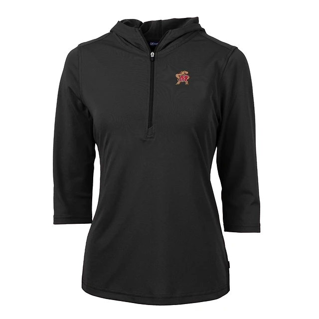 Women's Cutter & Buck Black Maryland Terrapins Virtue Eco Pique Half-Zip 3/4 Sleeve Pullover Hoodie