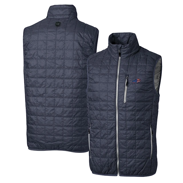 Men's Cutter & Buck Navy Buffalo Bills Rainier PrimaLoft Eco Full-Zip Puffer Vest
