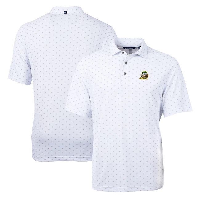 Men's Cutter & Buck White Oregon Ducks Big Tall Virtue Eco Pique Tile Print Recycled Polo