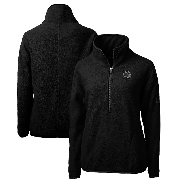 Women's Cutter & Buck Black Baltimore Ravens Helmet Logo Cascade Eco Sherpa Fleece Half-Zip Pullover Jacket