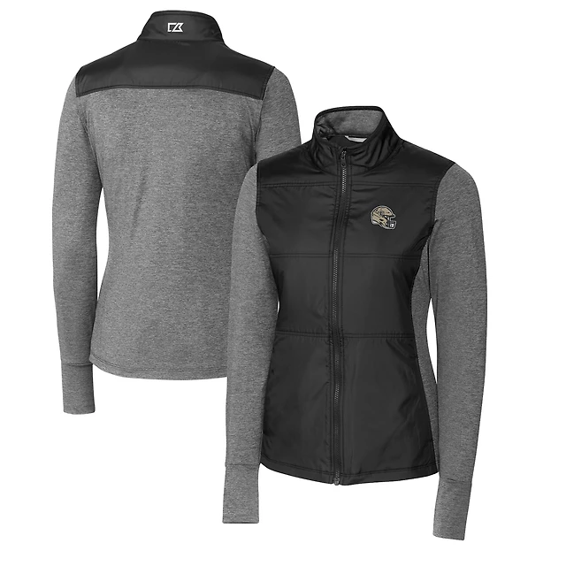 Women's Cutter & Buck Black New Orleans Saints Helmet Logo DryTec Stealth Hybrid Quilted Full-Zip Windbreaker Jacket