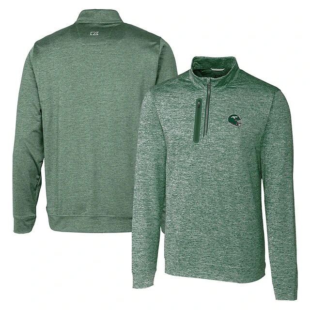 Women's Cutter & Buck Green New York Jets Helmet Logo DryTec Traverse Stretch Quarter-Zip Pullover Top