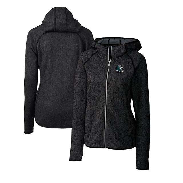 Women's Cutter & Buck Charcoal Philadelphia Eagles Helmet Logo Mainsail Sweater-Knit Full-Zip Hoodie