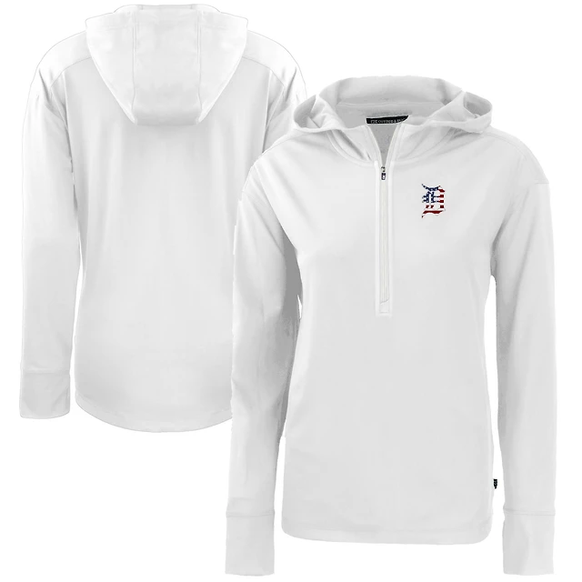 Women's Cutter & Buck White Detroit Tigers Daybreak Eco Recycled Half-Zip Hoodie