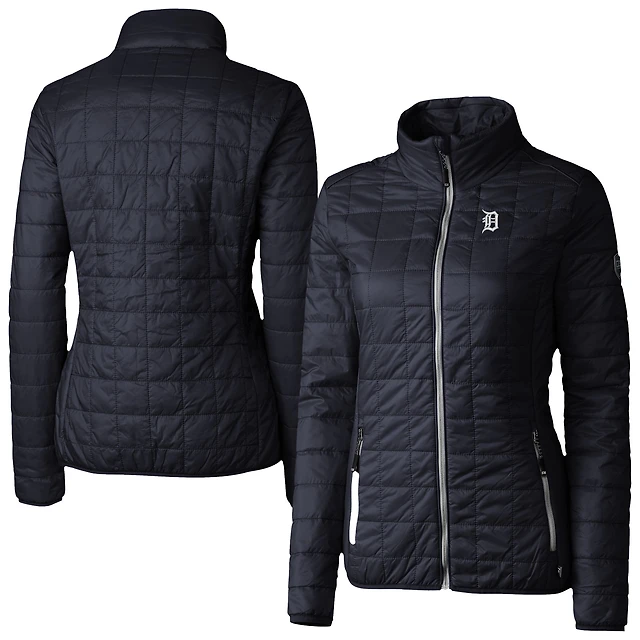 Women's Cutter & Buck Navy/Silver Detroit Tigers Rainier PrimaLoft Eco Insulated Full-Zip Puffer Jacket