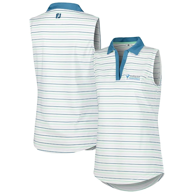 Women's FootJoy White Valspar Championship ProDry Sleeveless Stripe V-Neck Polo