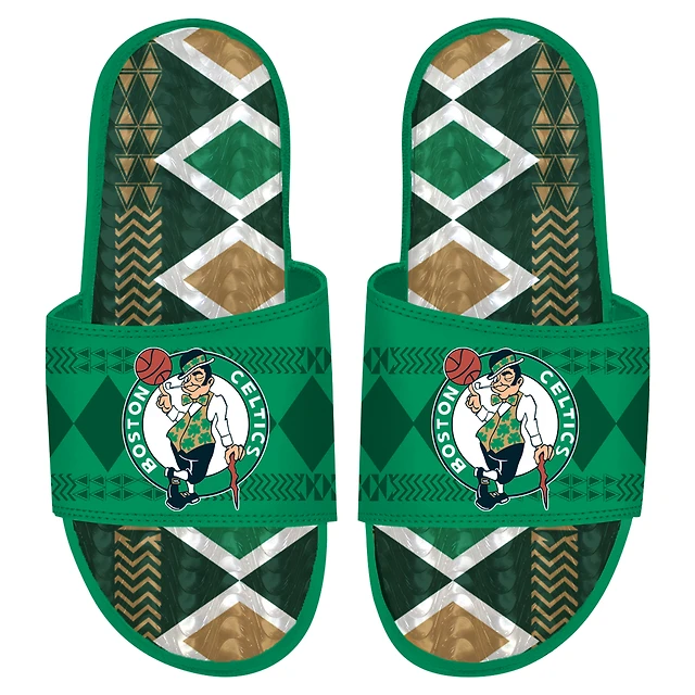 Men's ISlide Kelly Green Boston Celtics Shooting Touch Rwanda Pattern Gel Slide Sandals