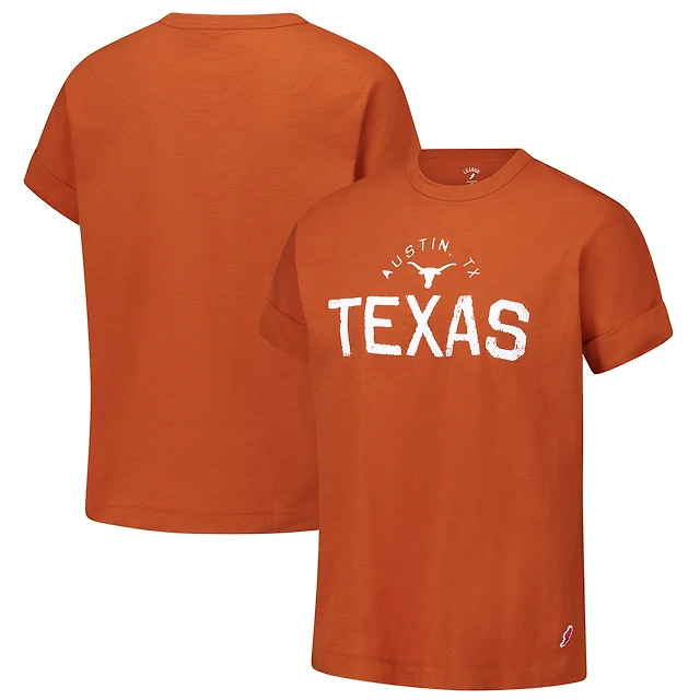 Women's League Collegiate Wear Texas Orange Longhorns Slub Rolled Cuff T-Shirt