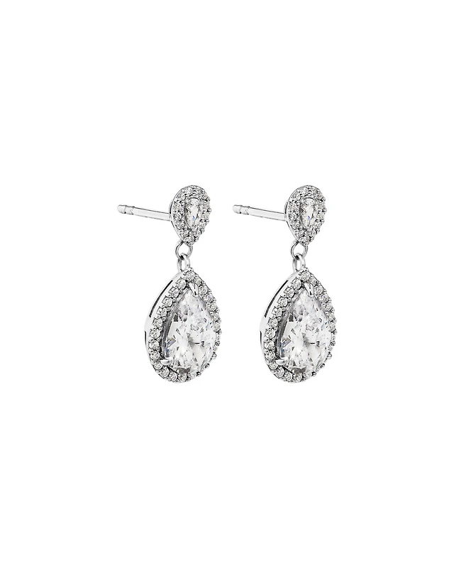 Pear Shape Cubic Zirconia Triple Drop Stud Earrings in Sterling Silver