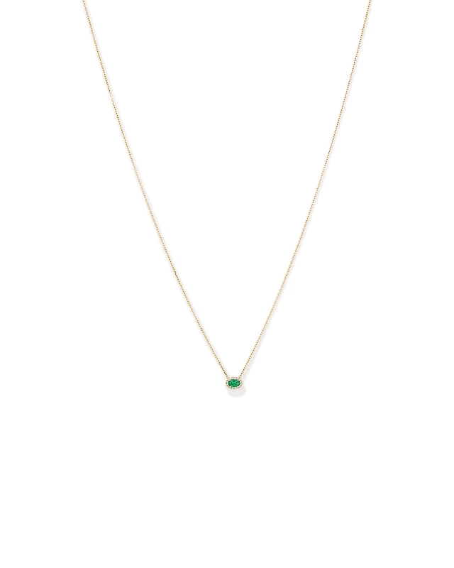 Emerald Cut Blue Sapphire Gemstone and 0.05 Carat TW Diamond Halo Necklace in 10kt Yellow Gold