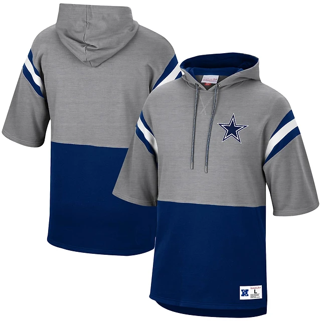 Men's Mitchell & Ness Silver/Navy Dallas Cowboys Gridiron Classics Training Room Half-Sleeve Pullover Hoodie