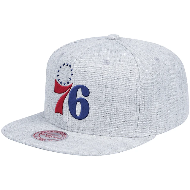 Men's Mitchell & Ness Heathered Gray Philadelphia 76ers Team Logo - Snapback Hat