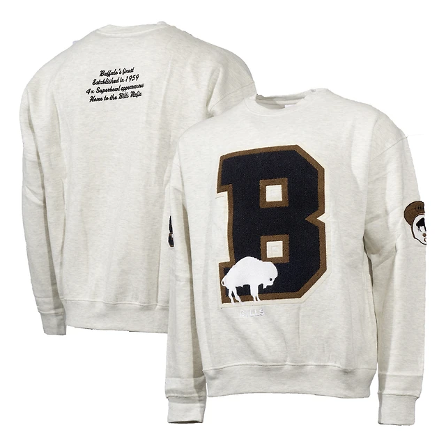 Men's Mitchell & Ness Oatmeal Buffalo Bills Varsity Oversized Pullover Sweatshirt