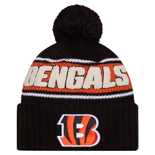 Men's New Era Black Cincinnati Bengals 2024 Sideline Sport Cuffed Knit Hat with Pom