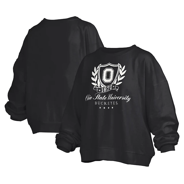 Women's Pressbox Black Ohio State Buckeyes Big Aug Script Janice Oversized Pullover Sweatshirt