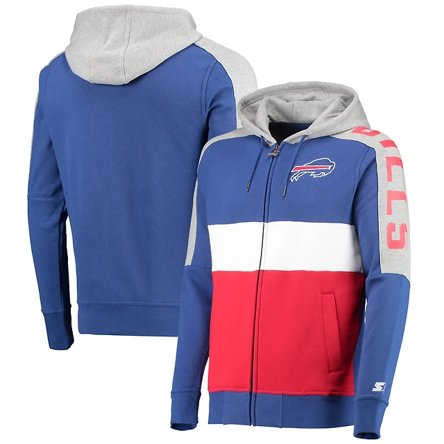 Men's Starter Royal/Red Buffalo Bills Playoffs Color Block Full-Zip Hoodie