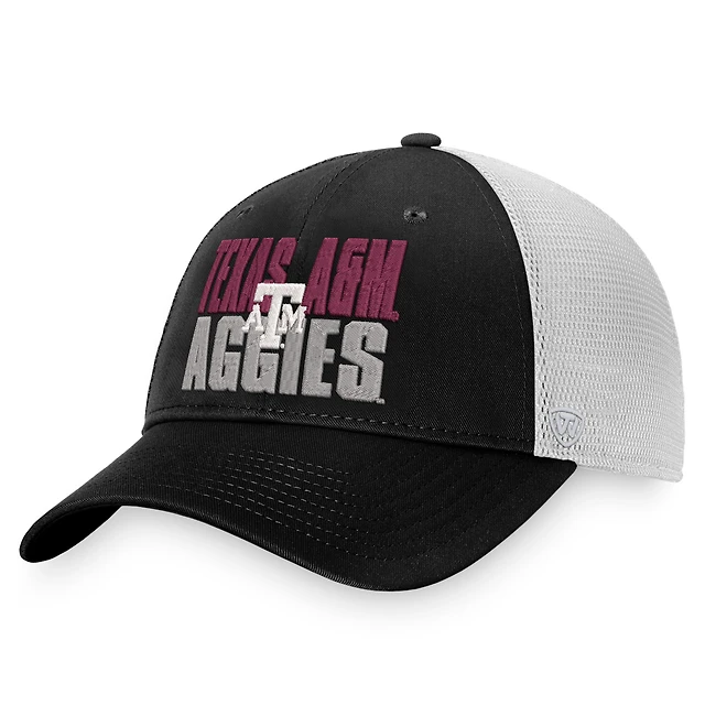 Men's Top of the World Black/White Texas A&M Aggies Stockpile Trucker Snapback Hat