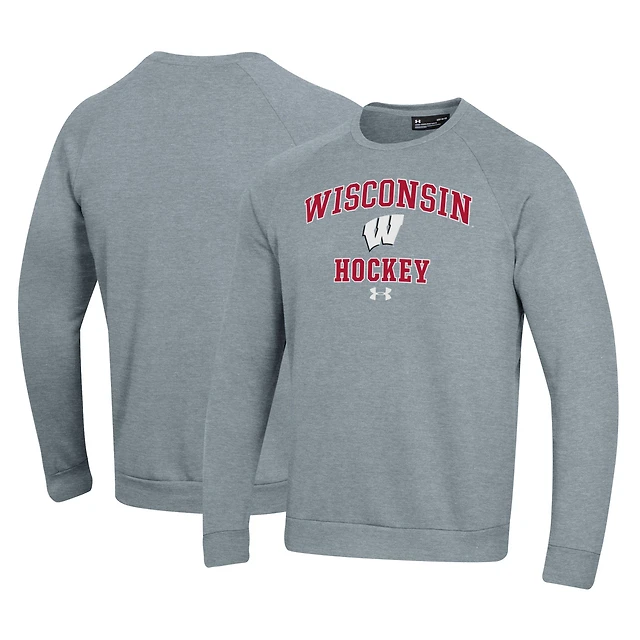 Men's Under Armour Gray Wisconsin Badgers Hockey All Day Arch Fleece Pullover Sweatshirt