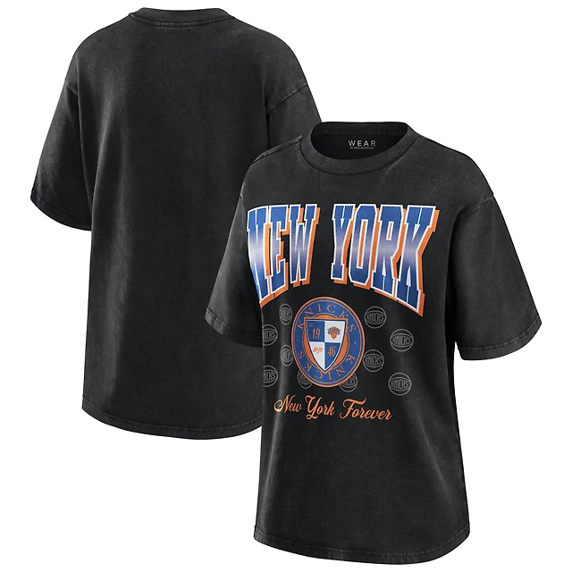 Women's WEAR by Erin Andrews Black New York Knicks Oversized Boyfriend T-Shirt
