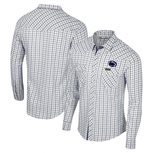 Men's Colosseum x Wrangler White Penn State Nittany Lions Plaid Window Pane Long Sleeve Full-Snap Shirt