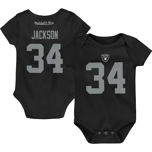 Newborn & Infant Mitchell Ness Bo Jackson Black Las Vegas Raiders Retro Name Number Bodysuit