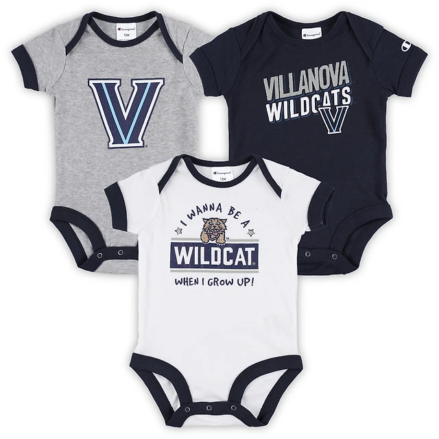 Infant Champion Navy/Heather Gray Villanova Wildcats I Wanna Be Three-Pack Bodysuit Set