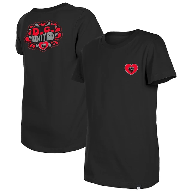 Girls Youth New Era Black D.C. United Bubble Heart T-Shirt