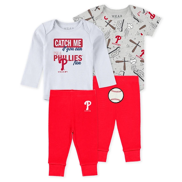 Newborn & Infant WEAR by Erin Andrews Heather Gray/White/Red Philadelphia Phillies Three-Piece Turn Me Around Bodysuits Pants Set
