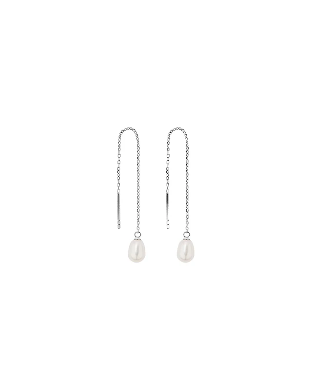 Threader Earrings with Cultured Freshwater Pearls in 10kt Yellow Gold
