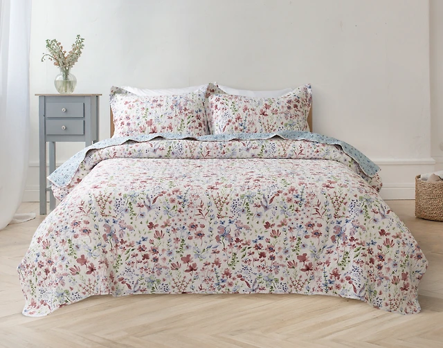 Summerfield Cotton Quilt Set, Floral, White, Queen