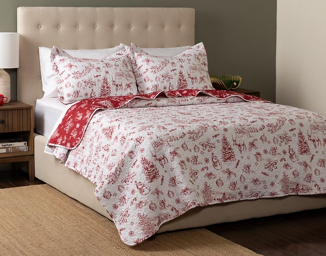Forest Frost Cotton Blend Coverlet Set, Scenic, Green,