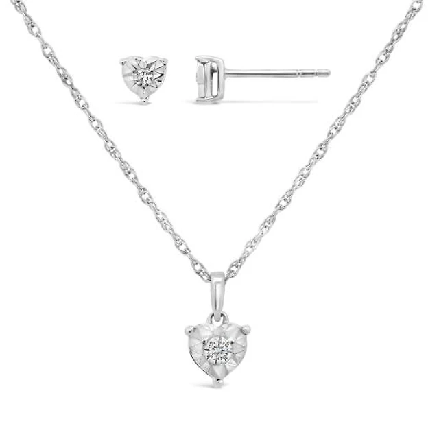 Julianna B Sterling Silver Created White Sapphire Earrings and Pendant Set