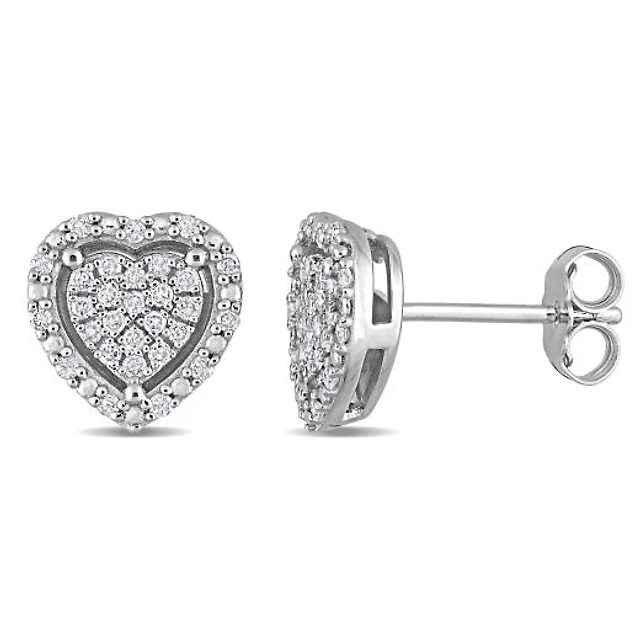 Julianna B Sterling Silver 0.29CTW Diamond Heart Stud Earrings