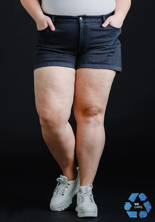 Women's Plus High Rise Destroyed Black Cuffed Short