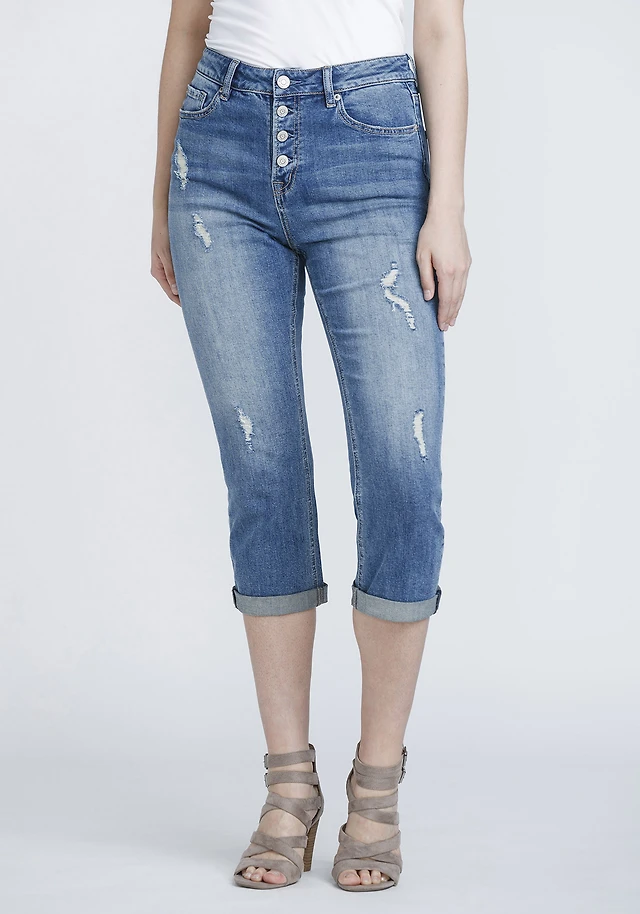 Women's Plus Boyfriend Cuffed Midi Jean Short