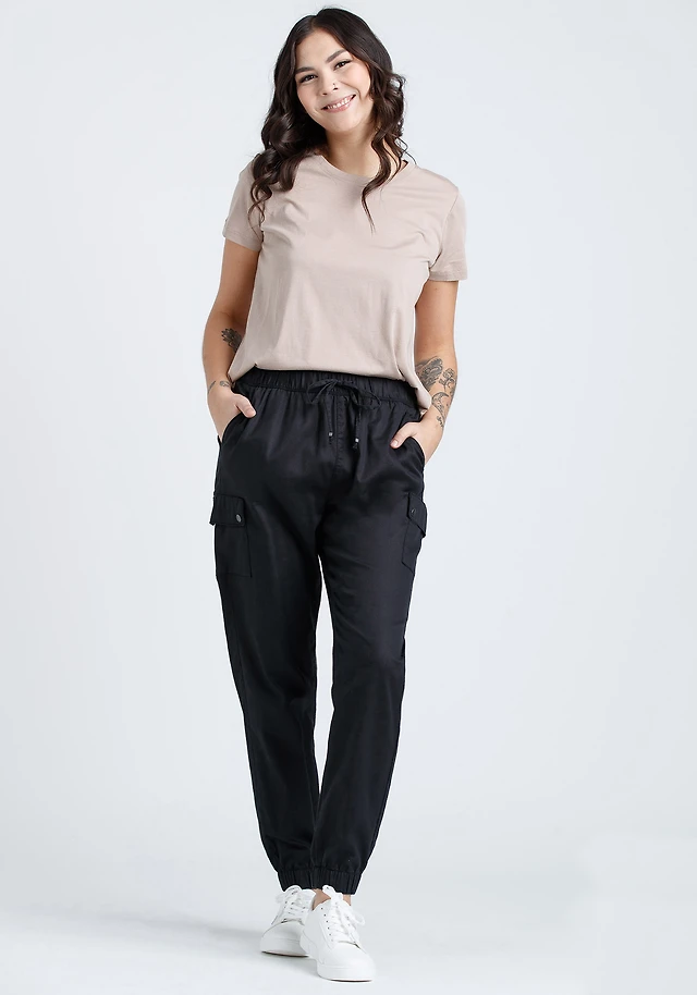 Women's Black Pull-on Ponte Wide Leg Cargo Pant