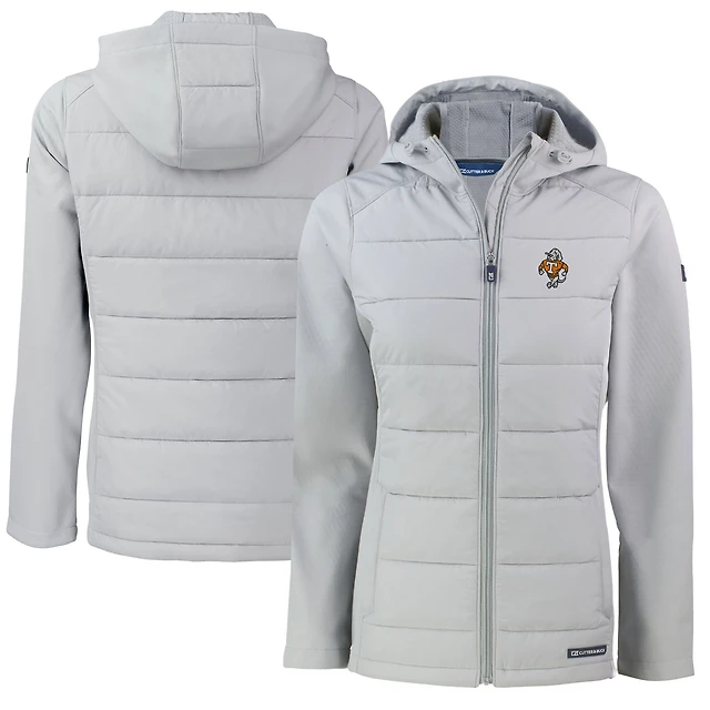 Women's Cutter & Buck Gray Tennessee Volunteers Vault Evoke Hybrid Eco Softshell Recycled Full-Zip Hooded Jacket
