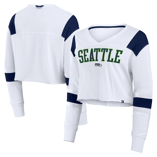 Women's Fanatics White Seattle Seahawks Stretch Cropped Fashion Long Sleeve T-Shirt