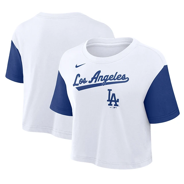 Women's Nike White/Royal Los Angeles Dodgers Script Dri-FIT Cropped T-Shirt