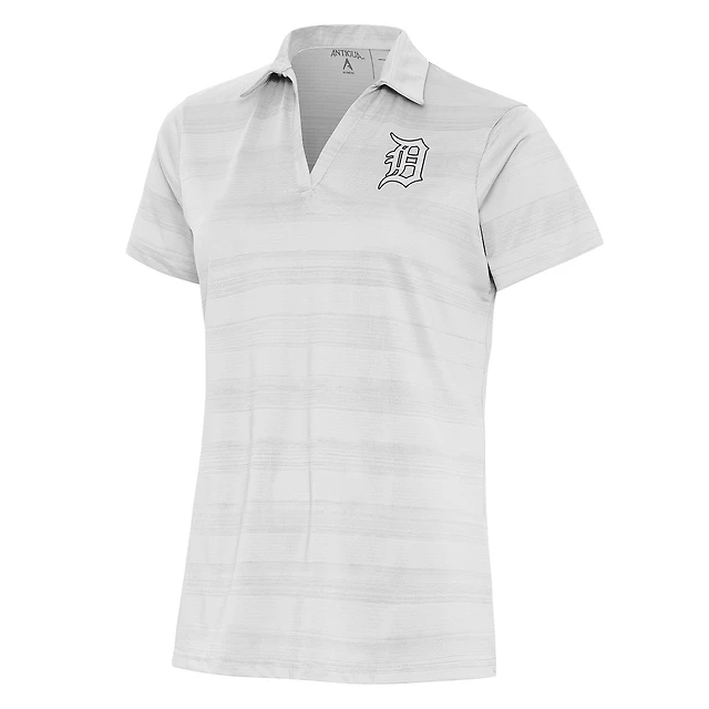 Women's Antigua White Detroit Tigers Brushed Metallic Compass Polo