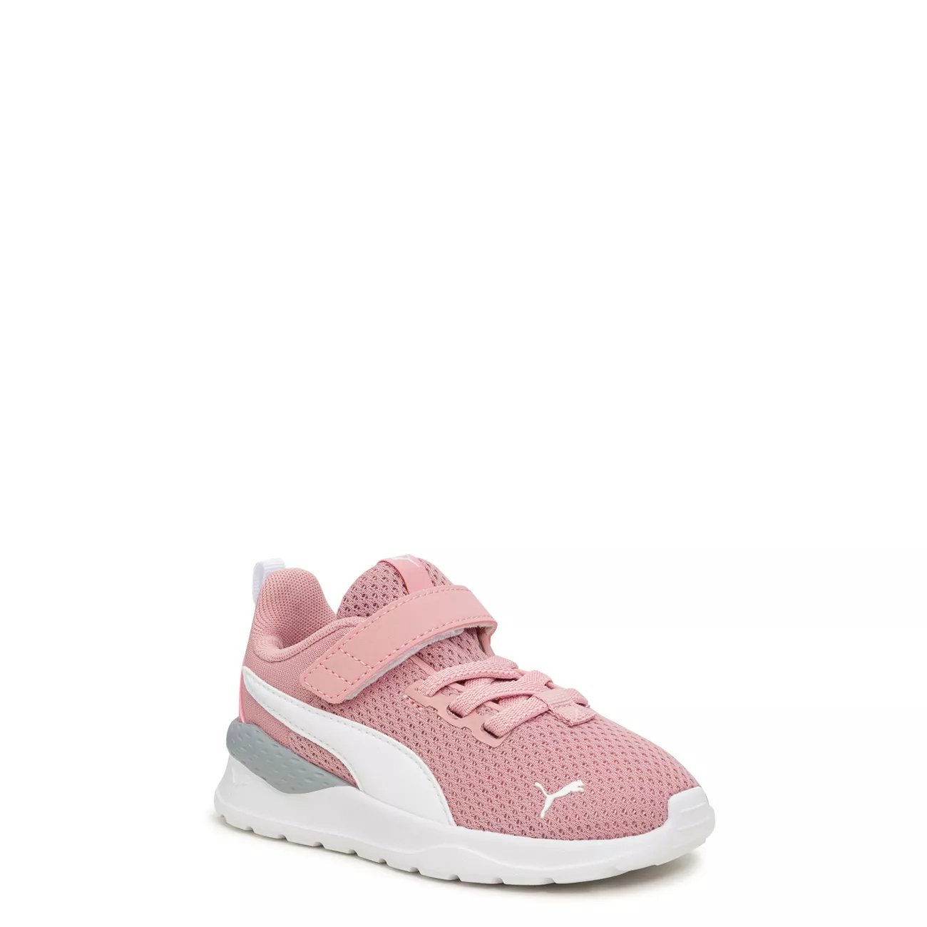 These toddler girls’ Anzarun Lite AC pale plum/puma white/midnight running shoes are designed for your fast-paced on-the-go little one’s activate lifestyle. Made of textile upper, these athletic slip-on sneakers have a round toe, elastic laced front panel for a snug fit, and an adjustable hook-and-loop instep strap closure for a customized fit. Features include a convenient pull loop at rear, soft textile lining, foam cushioned footbed, Kinder-Fit sockliner to ensure the correct fit, EVA midsole, and a lightweight EVA outsole.