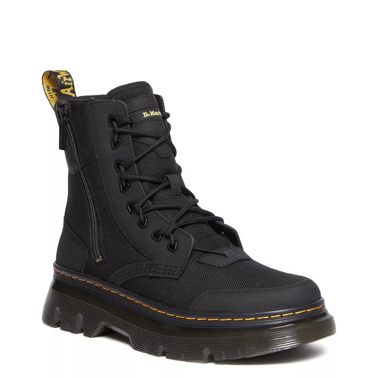 Stomp around in style wearing these youth girl's Dr. Martens black Combs Combat boots. Comprising a leather upper with round toe front, these casual boots feature secure lace-up closure, a convenient heel pull loop, contrast welt stitching details, a cozy footbed and a grippy rubber outsole.