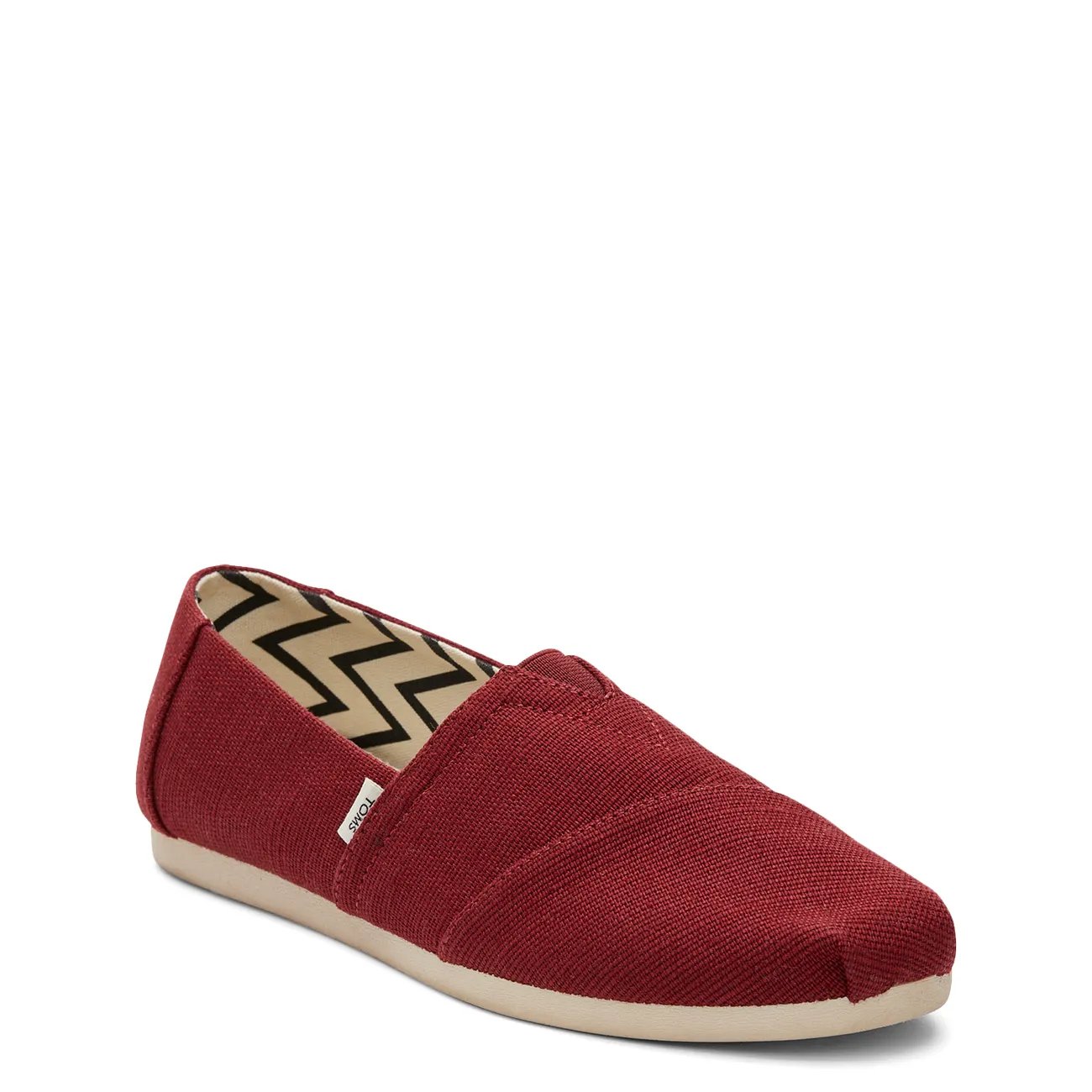 Get a perfect laid-back style and experience modern day comfort wearing these women's Toms Classic Alpargata slip-ons. Made of recycled cotton canvas, these slip-ons have a round toe and slip-on design with gore elastic insets for a snug fit and easy on/off wear. Features include a Custom TOMS comfort insole with 50% Eco content for sustainability, lining and sock-liner made with 50% recycled cotton, beautiful herringbone patterned lining, and a durable, flexible TPR outsole for enhanced traction and control.