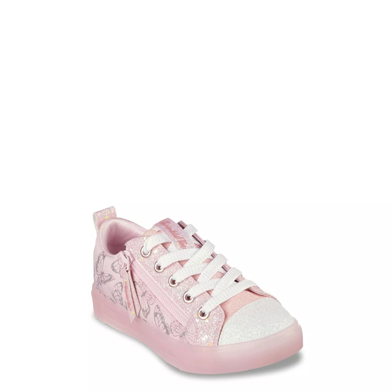 Look fascinating in these youth girls' Skechers Twinkle Sparks Butterfly multi dress sneakers. Crafted with synthetic upper, these light-up sneakers have cap toe front with butterfly appliques and side panels with butterfly prints for an eccentric look. Lace front and hook-and-loop strap bring an ideal fit, while all-over glittery topping creates magic. Cushioned comfort EVA insole offers daylong comfort while rubber midsole and outsole ensure reliable walking support.