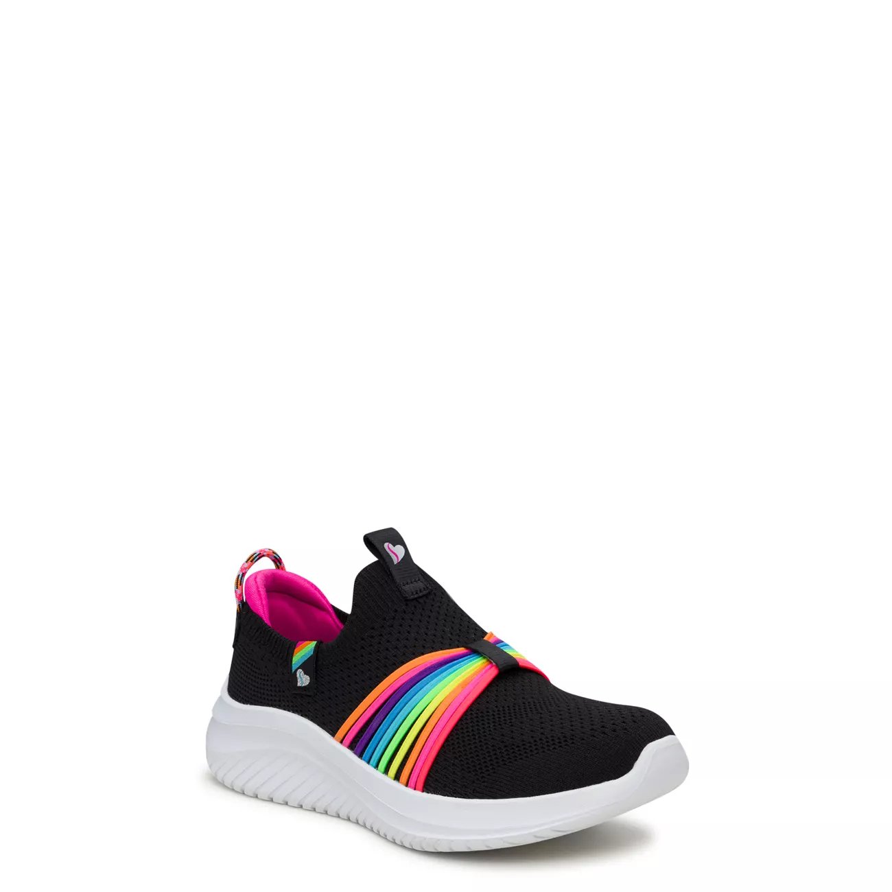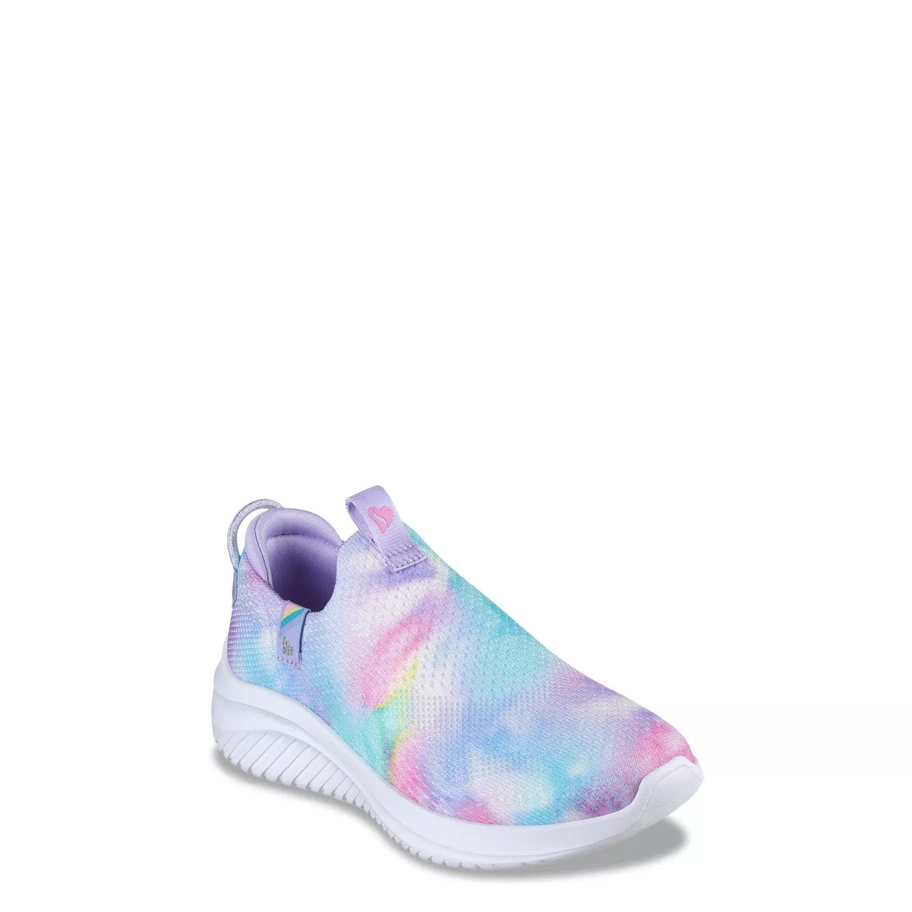 Make her stand out in these fabulous girls' Skechers Ultra Flex 3.0 black/multi athletic shoes. These pull-on sneakers, made with synthetic upper, have appealing prints and sparkly topping that can keep her in the spotlight. Also, these machine-washable sneakers comprise Air-Cooled memory foam insole for daylong cushioning, lightweight EVA midsole and outsole.