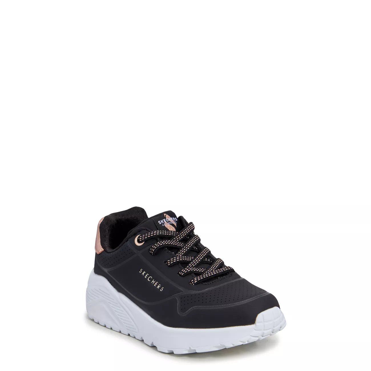 Breeze through the day in style and comfort with Skechers Youth Girls' Uno Lite turquoise slip-on sneakers! The perforated synthetic upper keeps feet cool, while the stretch-lace front and adjustable strap ensure a perfect fit. These lightweight sneakers boast a shock-absorbing midsole and a Skechers Memory Foam® insole for all-day comfort, finished with a flexible rubber outsole for easy movement. They're machine washable for easy cleaning, too!
