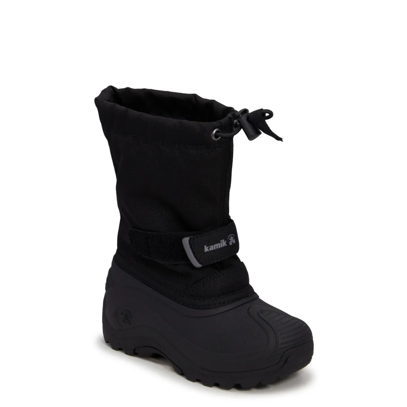 Stay tough during snowy conditions with these youth girls' Kamik Iceangel black winter boots. Made of waterproof nylon upper with a flannel snow collar, these cold weather boots a round toe and a bungee lacing system with Easy-Grab Lace Lock for a secure fit. Moisture-eliminating fleece lining helps keep you warm. A stabilizing ICEWAVE outsole with multi-directional treads and Proprietary Rubber He technology provides reliable traction and enhanced flexibility. Also, these vegan-friendly boots have fixed foam and fleece insulation and -40° cold rating to keep you impressively warm. Proudly made in Canada.