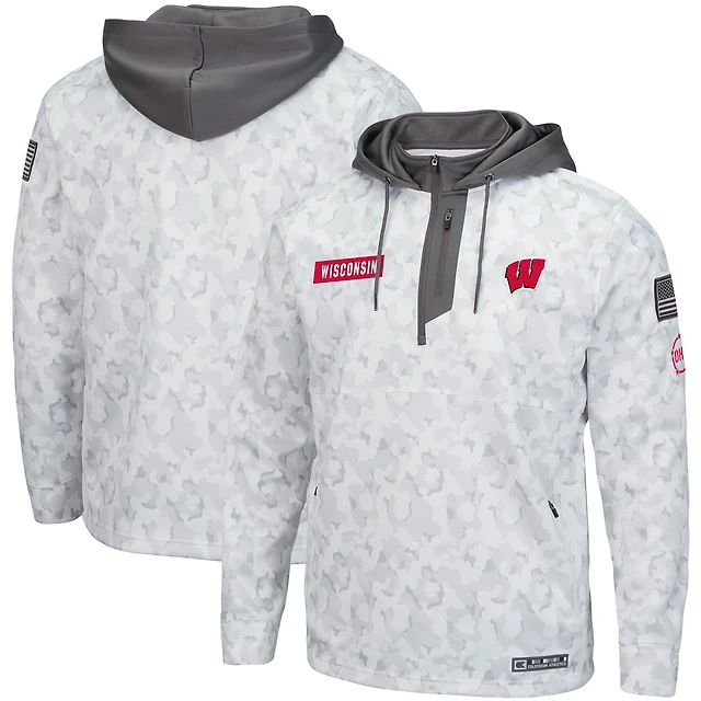 Men's Colosseum Arctic Camo Wisconsin Badgers OHT Military Appreciation Quarter-Zip Hoodie