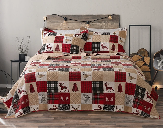 North Wood Cotton Quilt Set, Patchwork, Red,